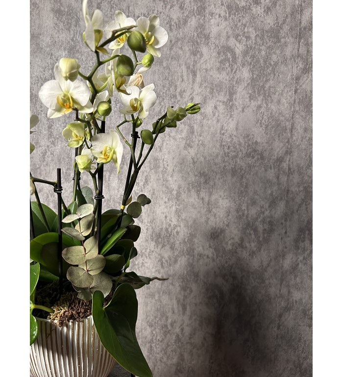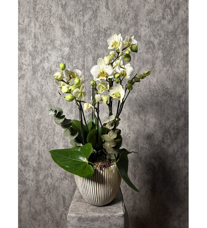 Zarafetin en sade hâli… Ivory Grace orkide aranjmanımız; beyazın masumiyetini, yeşilin tazeliğini ve doğanın huzurunu bir araya getiriyor. Her ortamda şıklığıyla dikkat çeken özel bir hediye seçeneği.